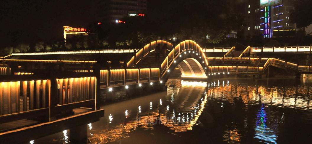 • Trang Trí Cầu Đường: Ánh sáng từ những cây cầu phản chiếu trên dòng sông, kết hợp với hiệu ứng DMX, tạo nên một bức tranh chuyển động đầy sống động và lãng mạn, biến cây cầu thành một điểm nhấn kết nối không gian.