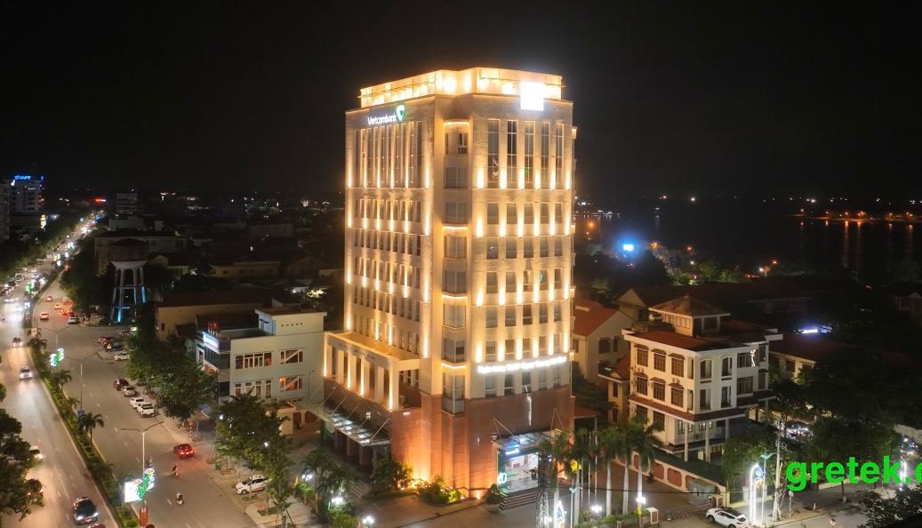 • Trang Trí Tòa Nhà (Building Facade Lighting): Các tòa nhà cao tầng bừng tỉnh trong đêm, khoác lên mình tấm áo ánh sáng lung linh, huyền ảo. Gretek kiến tạo nên những "vũ điệu" ánh sáng độc đáo, thể hiện bản sắc thương hiệu và gia tăng giá trị cho công trình.