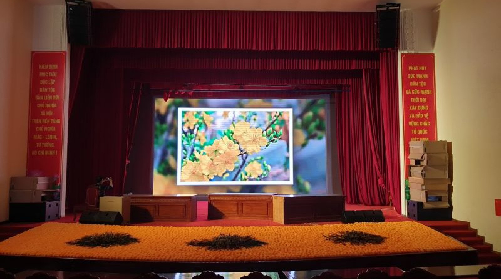 Mô tả: Màn hình LED tại hội trường trung tâm VH TP Móng Cái, hơn 50m2